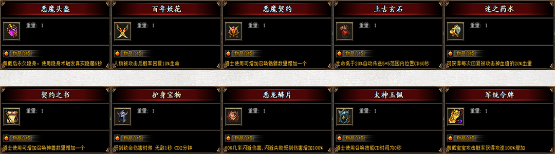 装备介绍:以上只展示部分装备,详细介绍请在论坛内查看,所有装备均无合成,全可怪物爆出,无任何隐藏